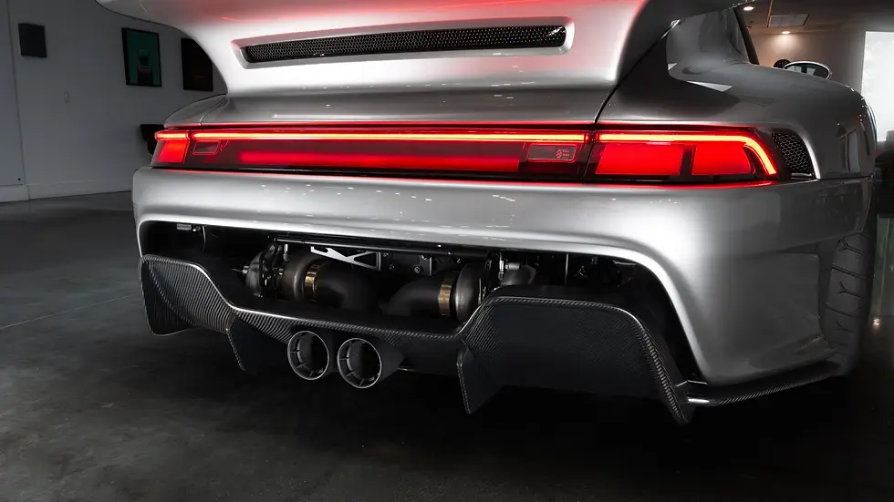 Maintaining a 2700-pound Porsche with 1000 hp on the road is quite challenging, but Guntherwerks has equipped the F-26 with a staggered tire setup to assist. The rear of the F-26 comes standard with 335mm section Continental ExtremeContact Force tires, while slightly smaller 295mm sections aid in the agility of the lightweight model. A modern traction control system, along with a motorsport-derived ABS system, will also help keep the F-26 stable. Additionally, the F-26 features a brand-new double-wishbone front suspension and adaptive JRZ dampers. The rear wheelbase has been extended by 30 millimeters to ensure dynamic stability and enhance the center of gravity.